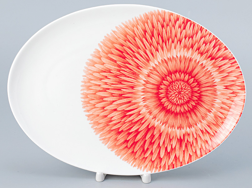 Предметы входящие в коллекцию: круглые тарелки без борта, круглое и овальные блюда, миски и салатники, чайные и кофейные чашки.